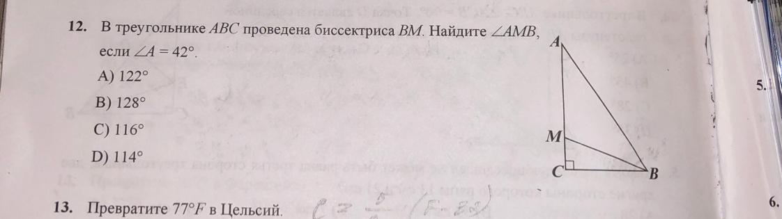 1) ∠В=90°-42°=48° (т.к. треугольник ABC прямоугольный)