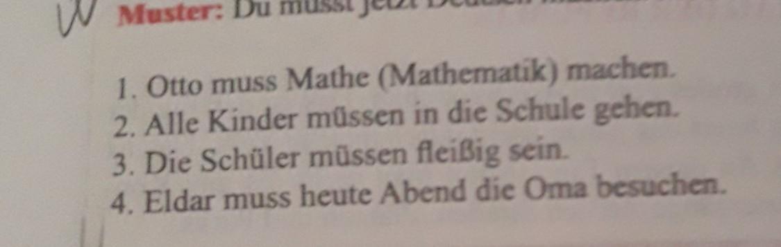 Muster:Du musst jetzt Deutsch machen. Muss du jetzt Deutsch machen?