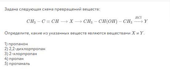 ответ 13, сначала образуется пропанон (реакция кучерова), а затем добавляет водород и получается пропанол-2, добавив кислоту получаем 2-хлорпропан