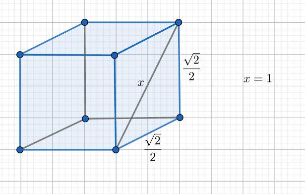 Диагональ грани куба = 1.