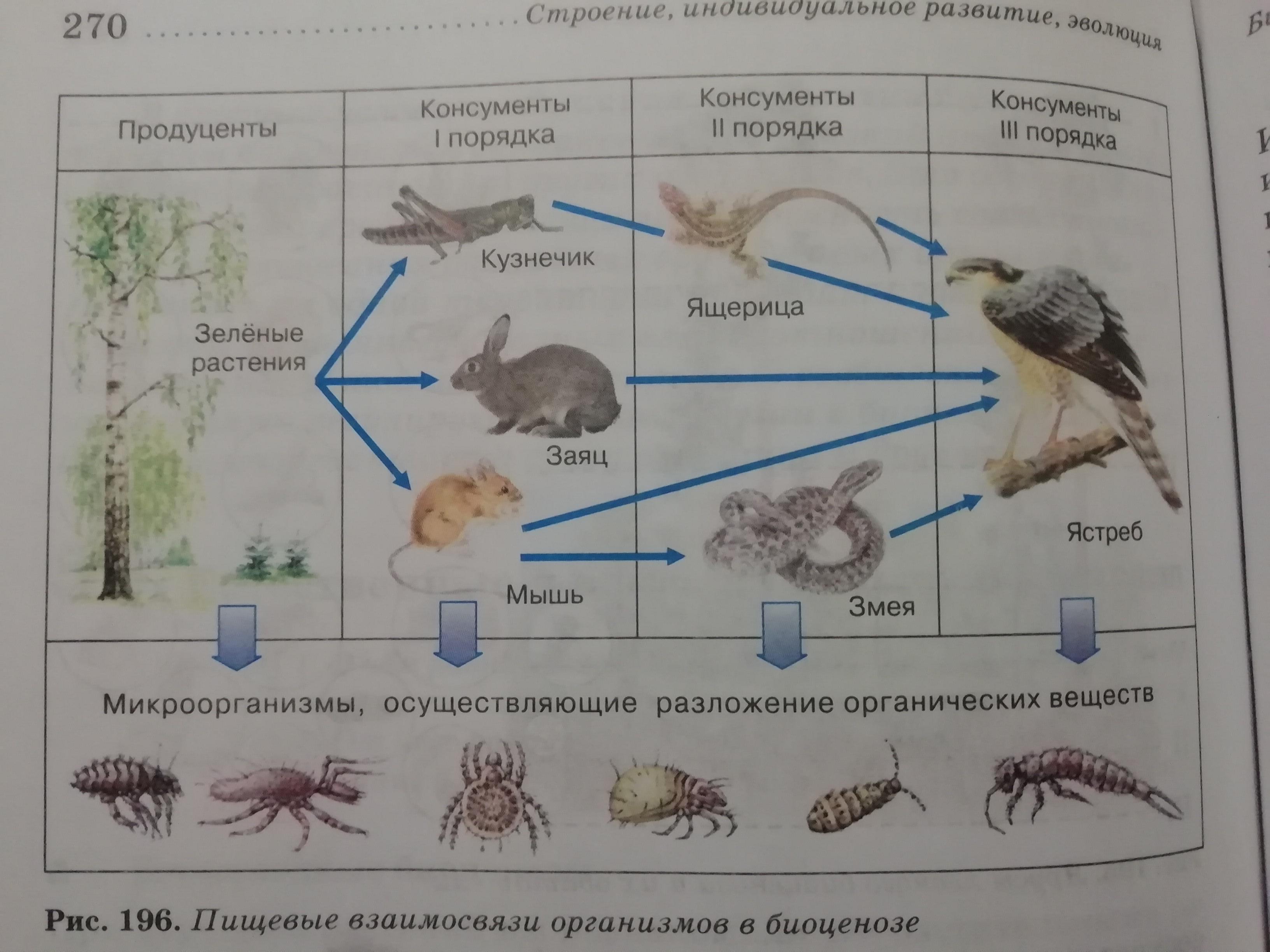Рассмотрите рисунок 197. Составьте и запишите в тетради три пищевые цепи из объектов, изображённый на рисунке