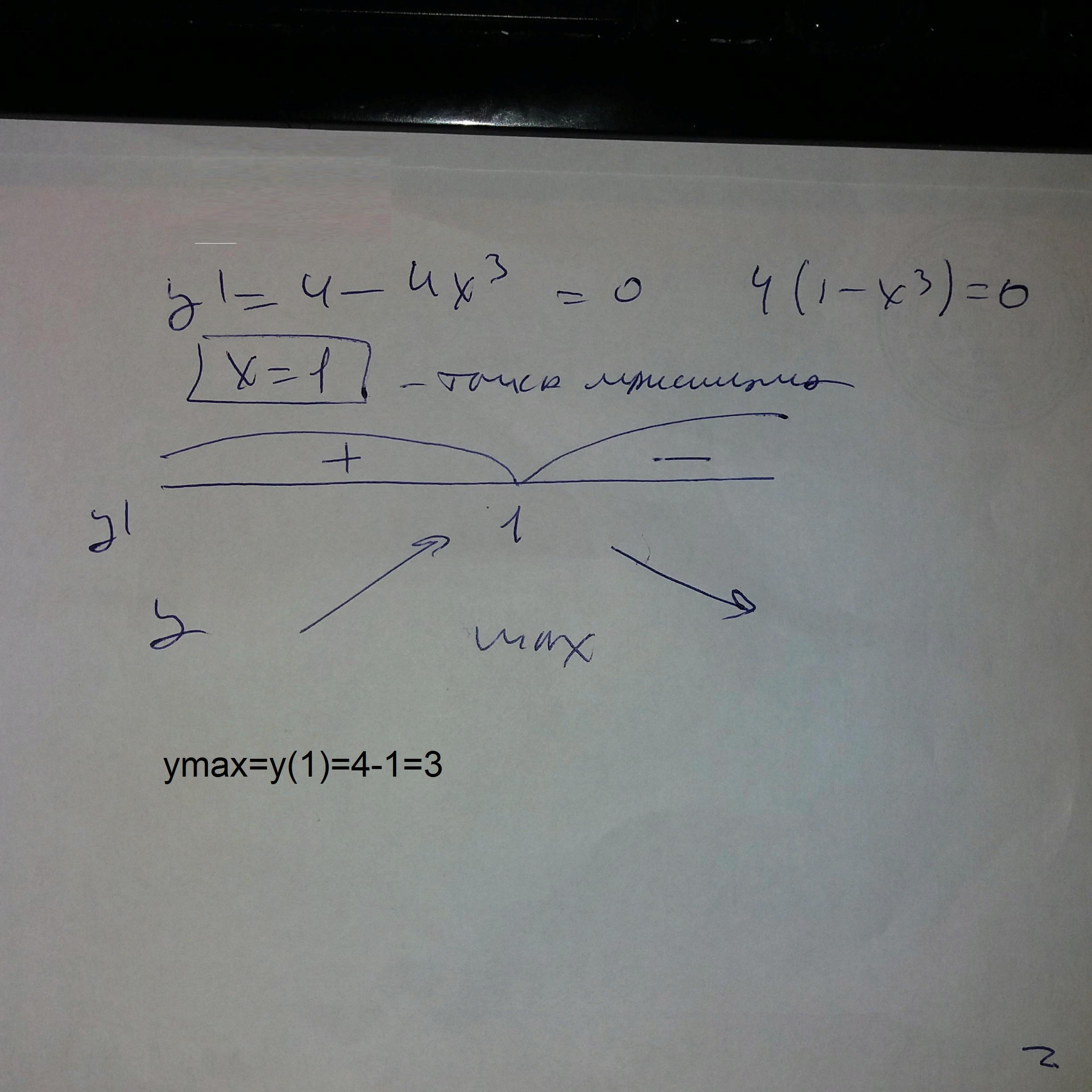 приравняем ее к нулю. 4-4х³=0 Найдем критическую точку.
