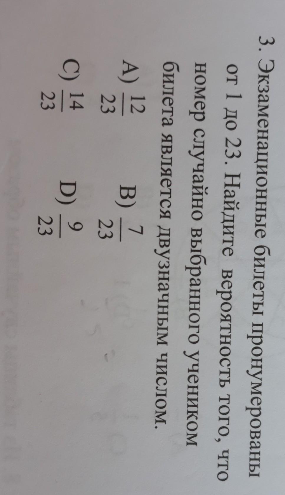 экзаменационные билеты пронумерованы от 1 до 23 Найдите вероятность того что номер случайно выбранного учеником билет является двузначным числом