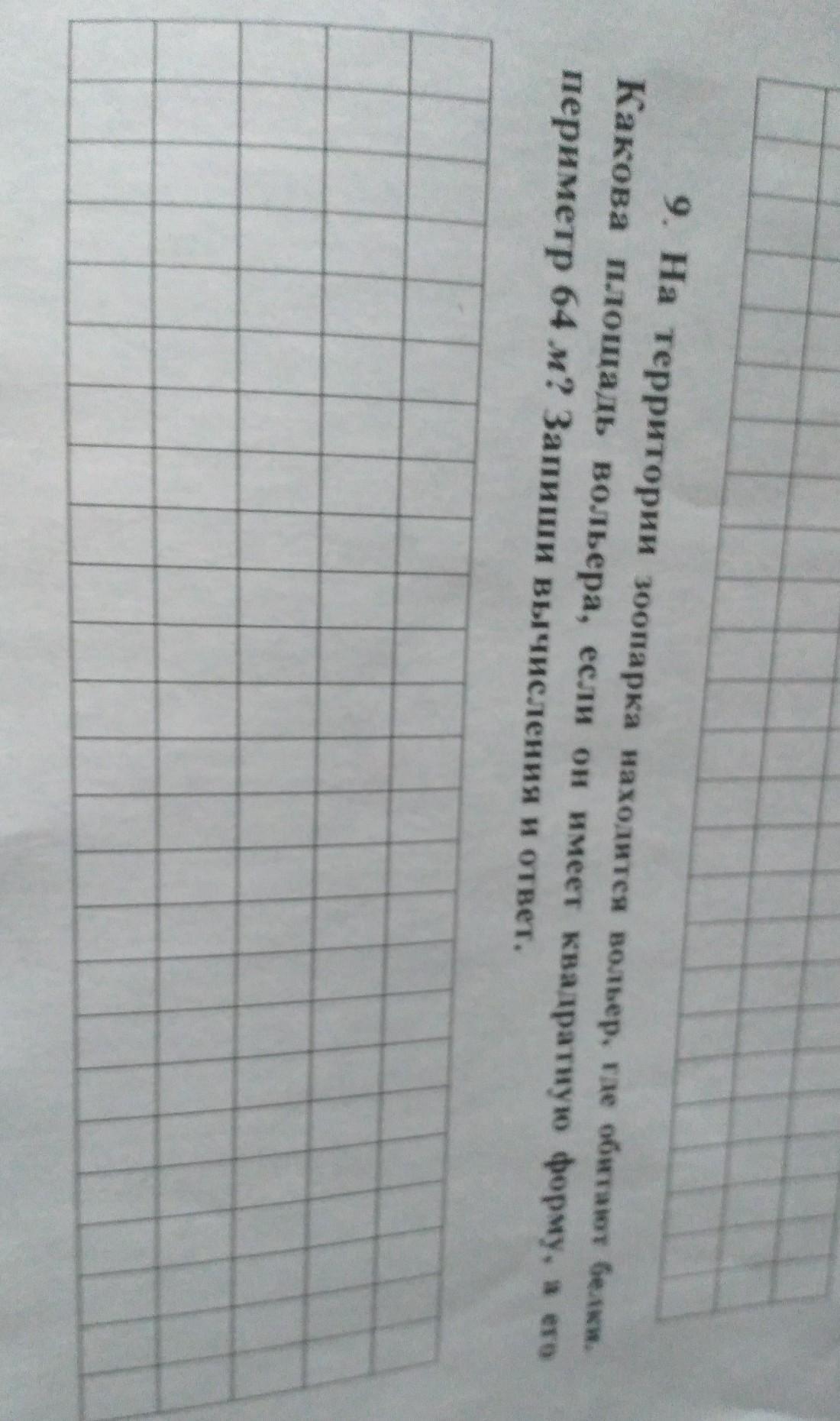 на территории зоопарка находится вольер Где обитают белки Какова площадь вольера если он имеет квадратную форму а его периметр 64 м Запиши вычисления и ответ