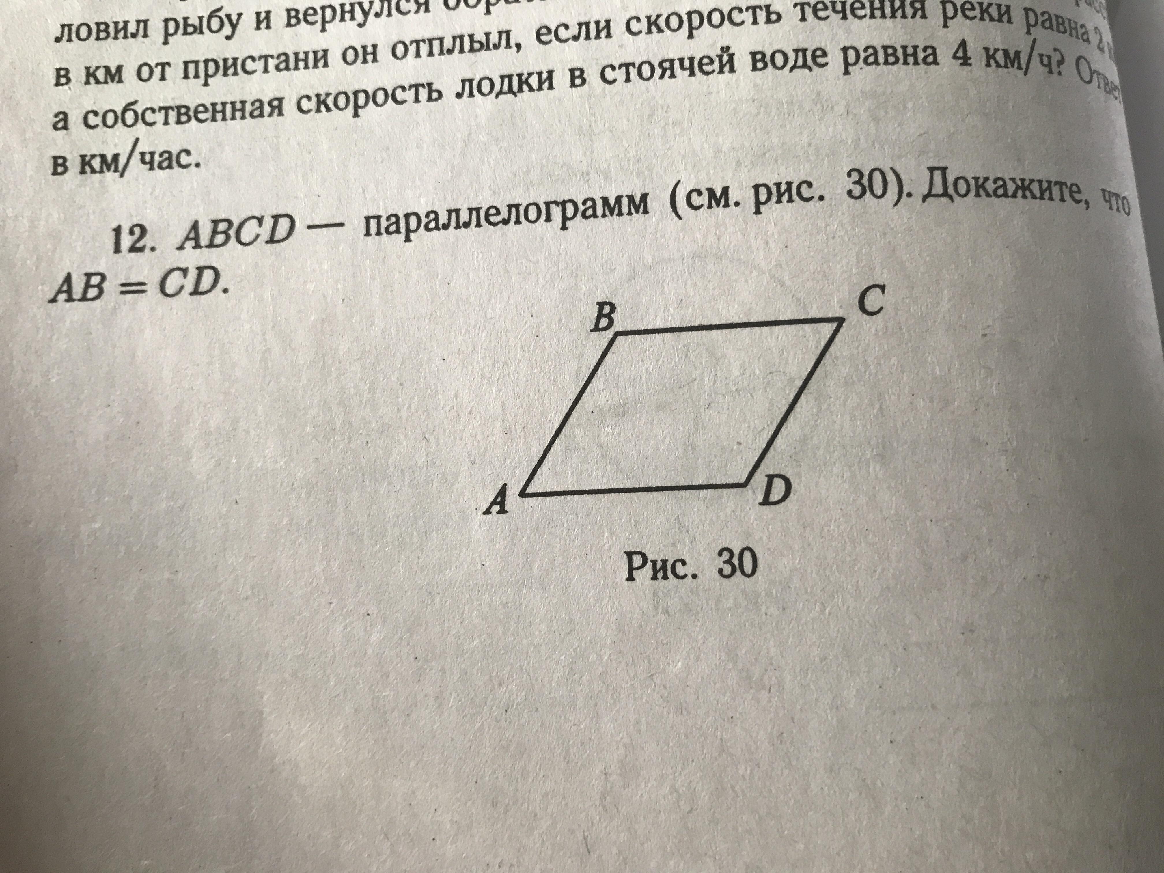 Пользуемся только определением, четырехугольник называется параллелограммом, если у него противоположные стороны попарно параллельны. Соединим точки В и Д. Углы СВД И ВДА равны как внутренние накрест лежащие при ВС║АД и секущей ВД , по этой же причине равны и углы ВДС и ДВА, для треугольников ВСД И ДВА ВД - общая. И они равны по стороне и двум прилежащим к ней углам. 2 признак равенства треугольников. Значит, в равных треугольниках против равных углов лежат равные стороны. Поэтому АВ=СД.