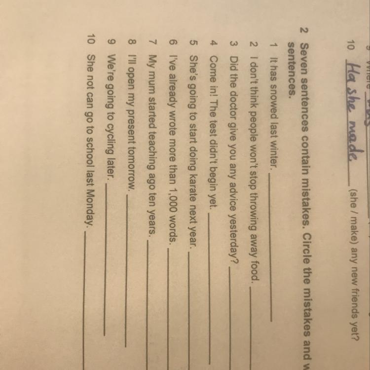 Seven sentences contain mistakes. Circle the mistakes and write the corrections. Tick (+) the correct sentences.