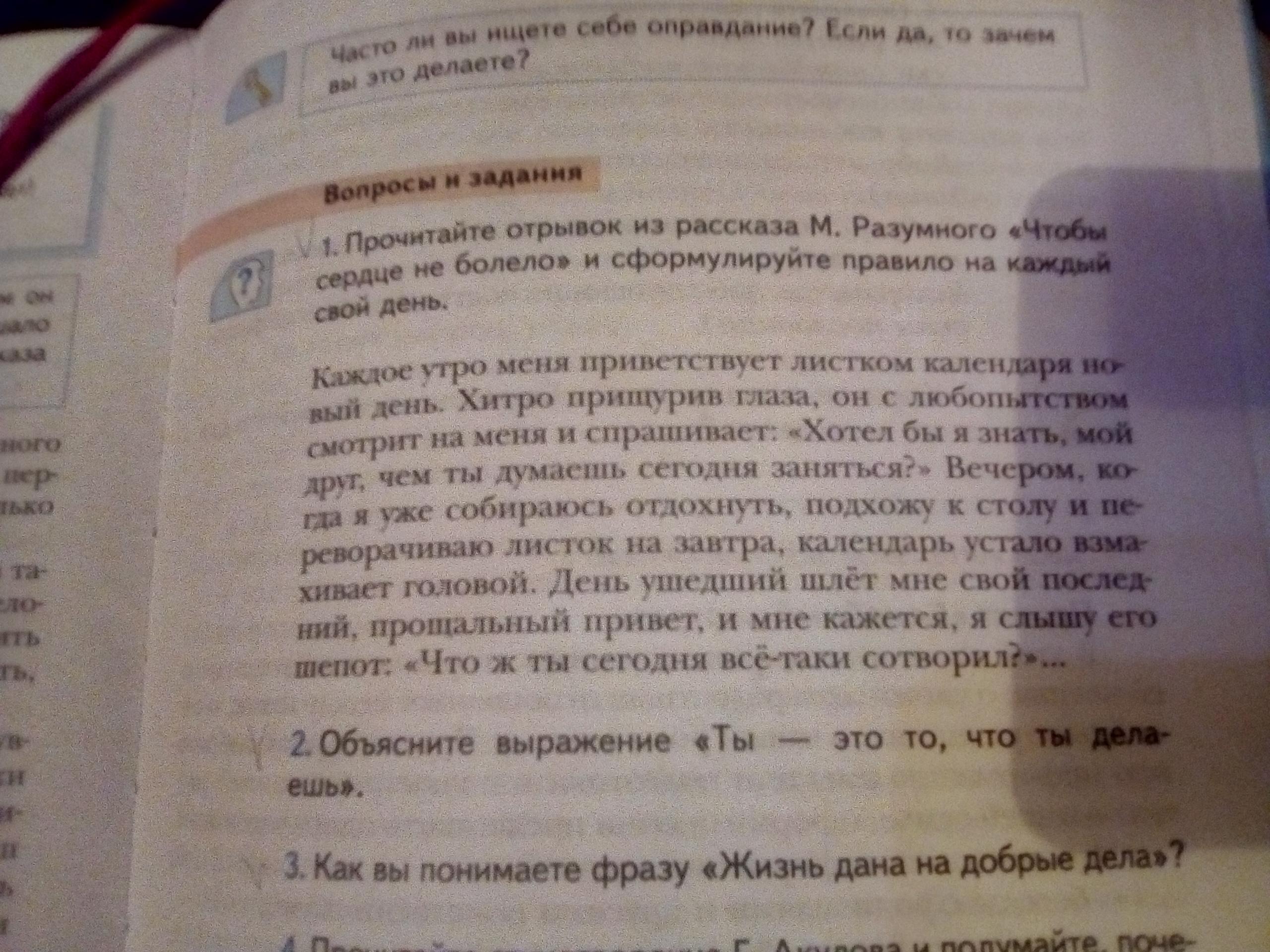 Прочитайте отрывок из рассказа М.Разумного "Чтобы сердце не болело" и сформулируйте на каждый свой день.