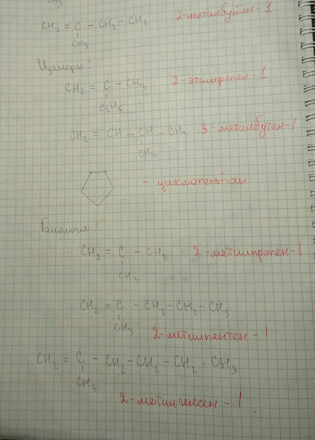 Составьте структурные формулы 3 гомологов и 3 изомеров