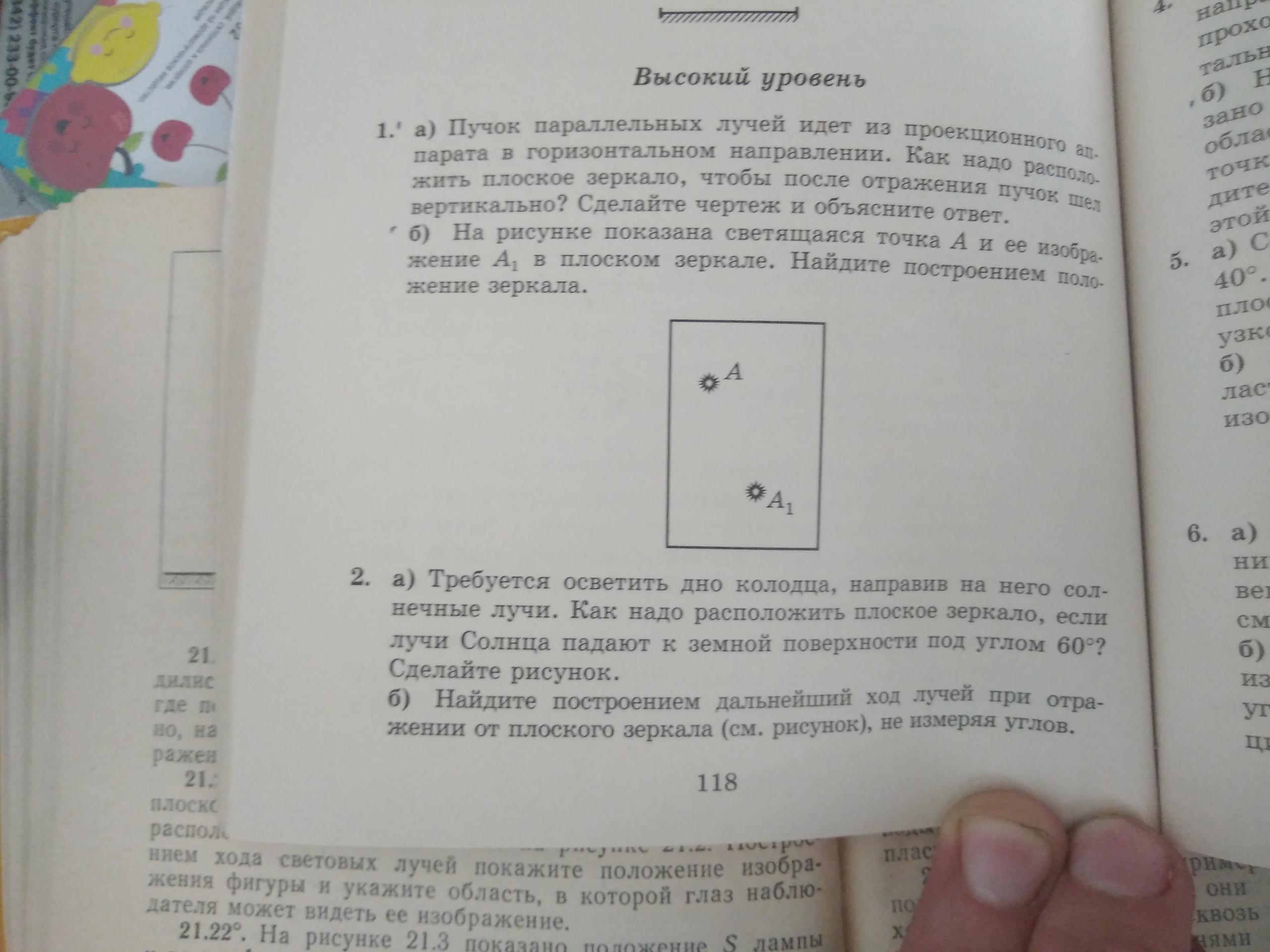 На рисунке показана светящаяся точка А и ее изображение А1 в плоском зеркале. Найдите построением положение зеркала.