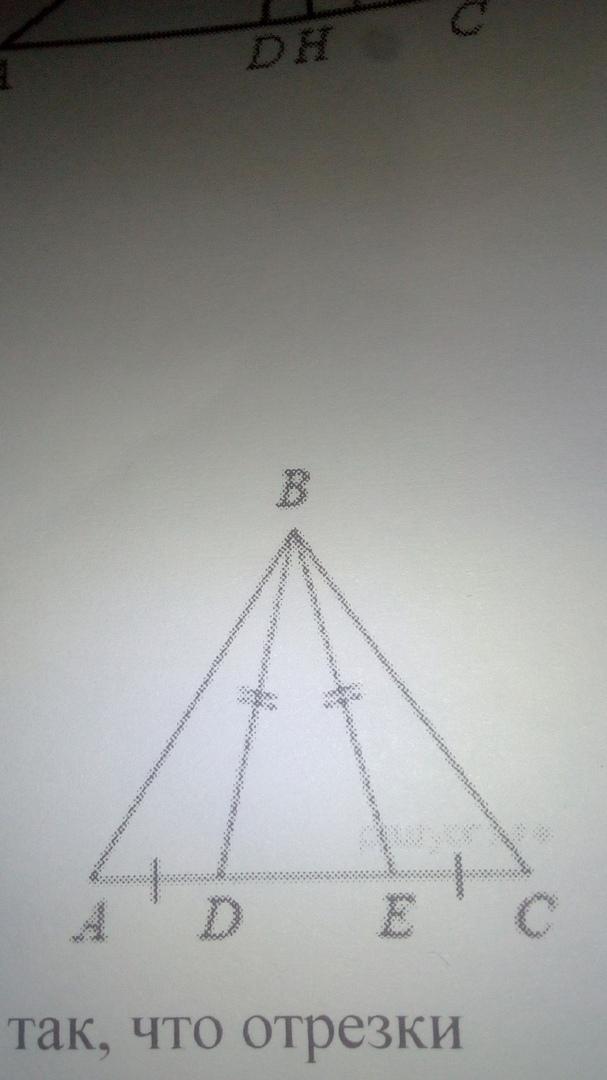 На стороне AC треугольника ABC выбраны точки D и E так, что отрезки AD и CE равны (см. рисунок). Оказалось, что отрезки BD и BE тоже равны. Докажите, что треугольник ABD равен треугольнику CBE.