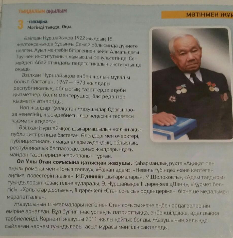 переводит его произведения на казахский язык. A .. Нуршайкин II степени "Дако, Смета Бел"