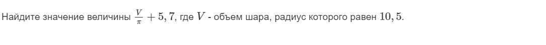V=4/3πr³=4/3π10,5³=π4/3*1157,625=1543,5π м³