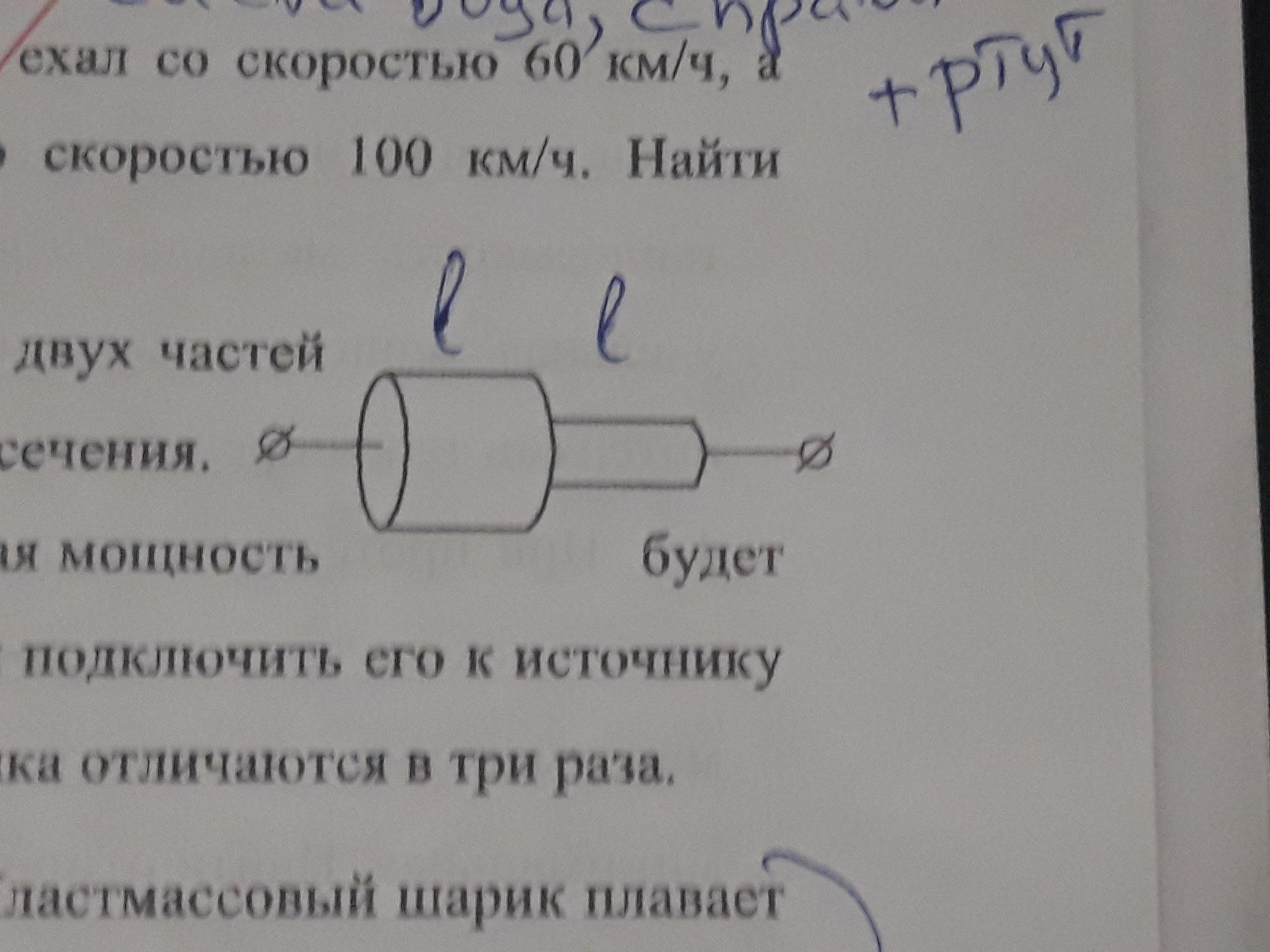 Цилиндрический проводник состоит из двух частей одинаковой длины, но разной площади сечения. Сопротивление проводника равно 9 Ом. Какая мощность будет выделяться в каждой части проводника, если подключить его к источнику напряжение 24 В. Площади сечения отличаются в три раза.