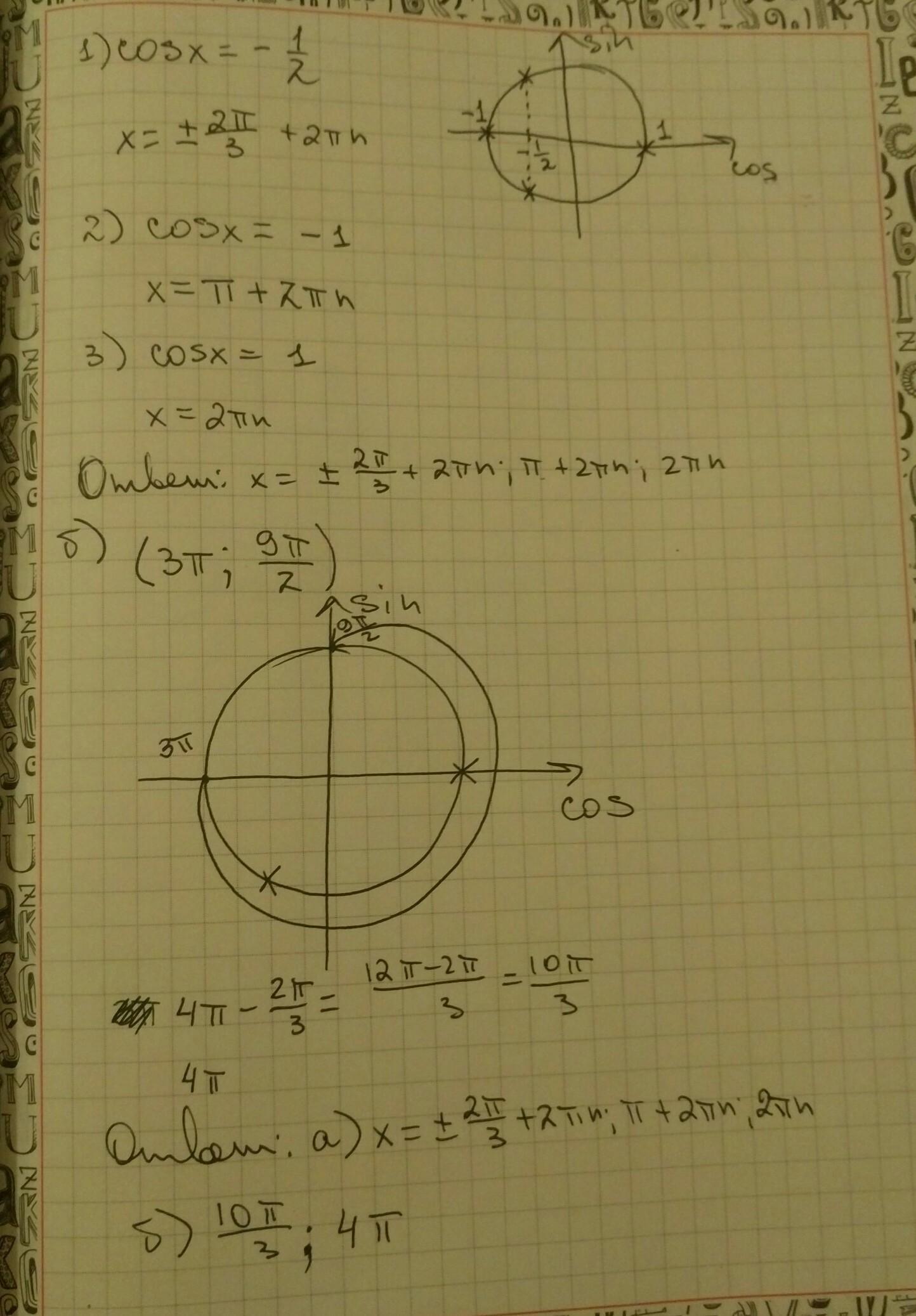 б) Найдите все корни этого уравненияпринадлежаɳие отрезку (3pi, 9pi/2)