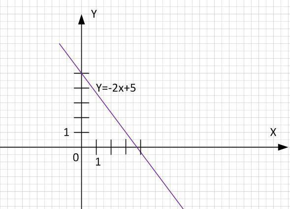 б) y = -2x+5 линейная функция, графиком является прямая, для ее построения достаточно двух точек