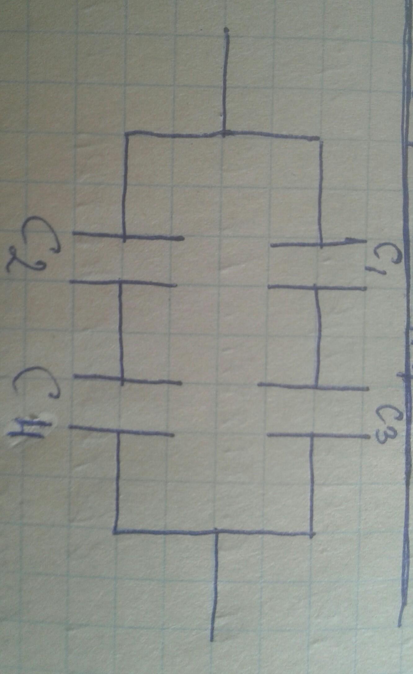 Объяснение:C1 и С3, С2 и С4 соединены последовательно, и они между собой связаны параллельно. С1 и С3=С1×С3/С1+С3, то же самое с С2 и С4, и потом их суммируем