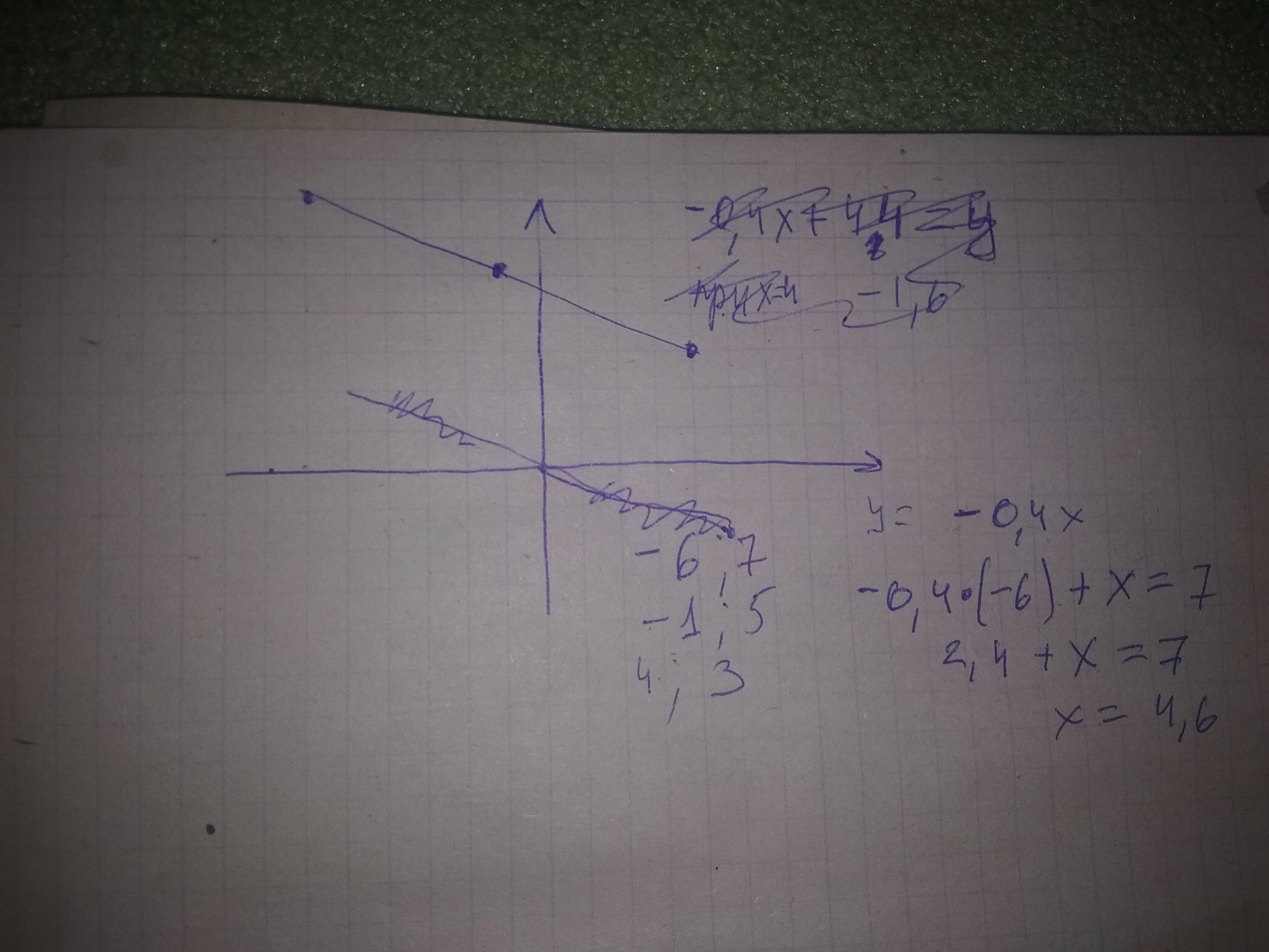 - перед х потому что график убывает, 0.4 потому что х увеличилось на 10, а у уменьшилось на 4, т.е 4/10