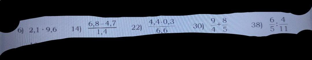 38) 6/5:4/11 = 6/5 * 11/4 = 66/20 = 3.3