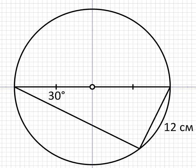 найдите радиус окружности,описанной около треугольника, если сторона лежащая против угла 30 градусов, равна 12 см.
