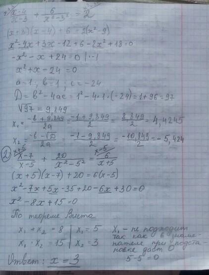 x-4/x-3 + 6/x^2-9=2