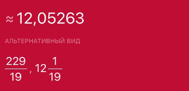4. Выделяем целую часть из дроби путём делением 229 на 19 = 12 целых 1/19