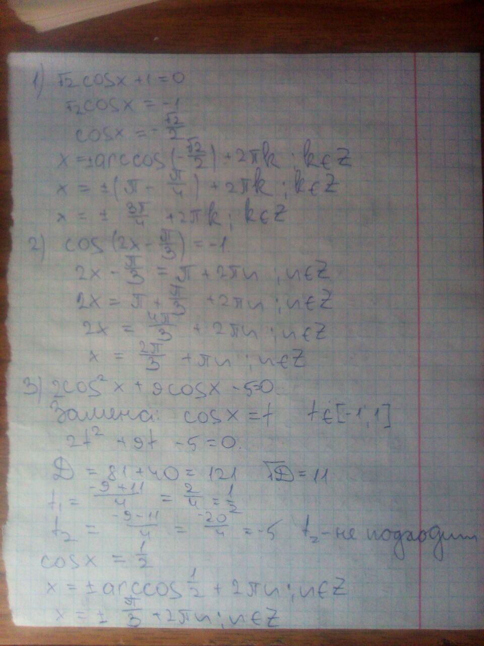 3. 2Cos²(x)+9cos(x)-5=0