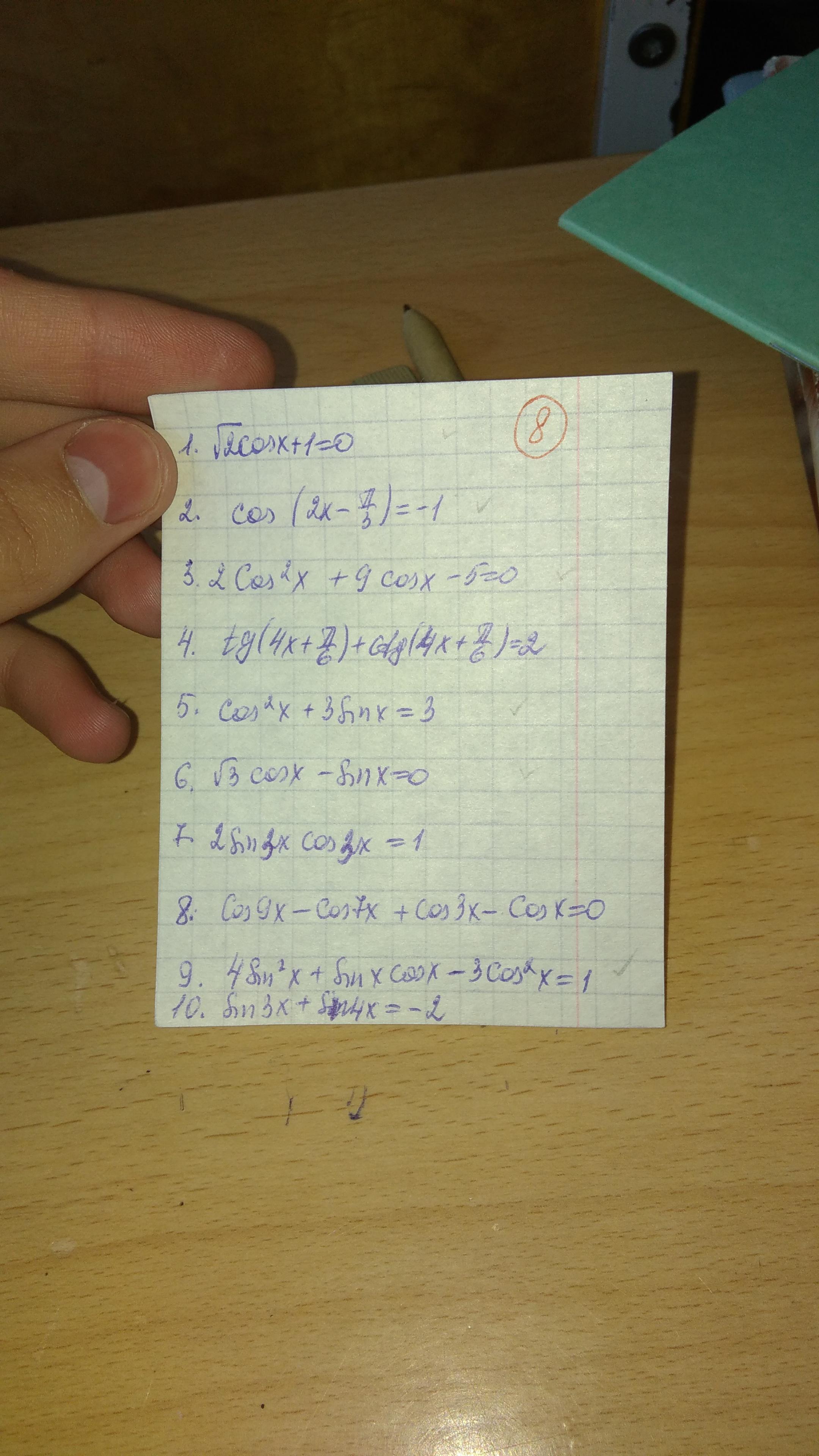 Пожалуйста, решите пару тригонометрических уравнений, которые обозначены галочкой справа