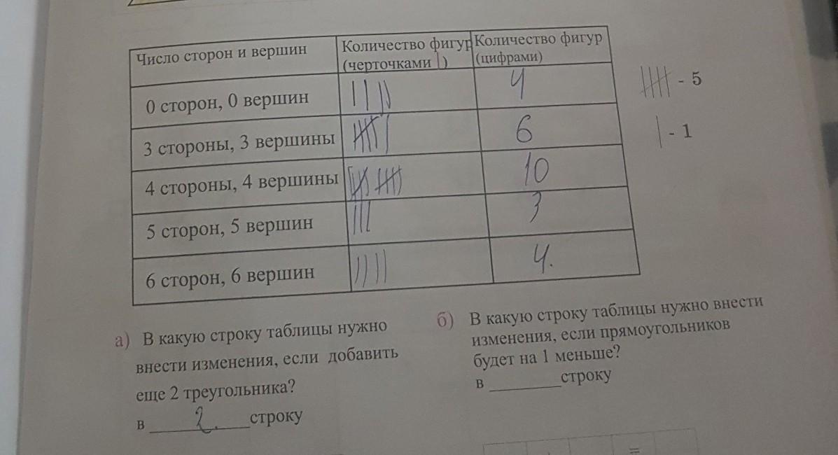 а) у треугольника 3 стороны и 3 вершины, поэтому надо внести изменения во 2 строку. Надо там дорисовать 2 палочки.