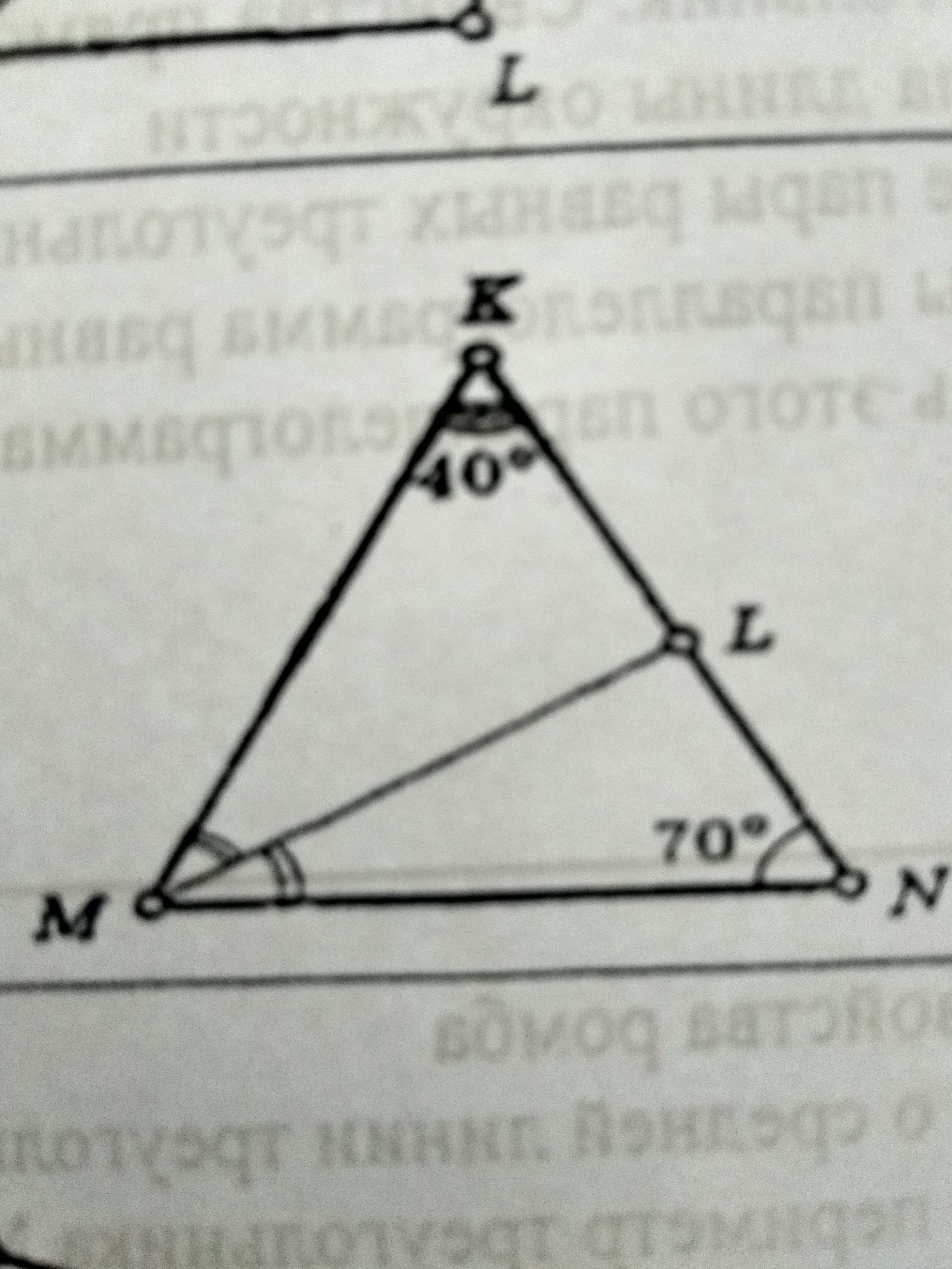 ΔМКN -Равнобедренный,так как <N=<M(<M=180°-<K-<N=180°-40°-70°=70°).