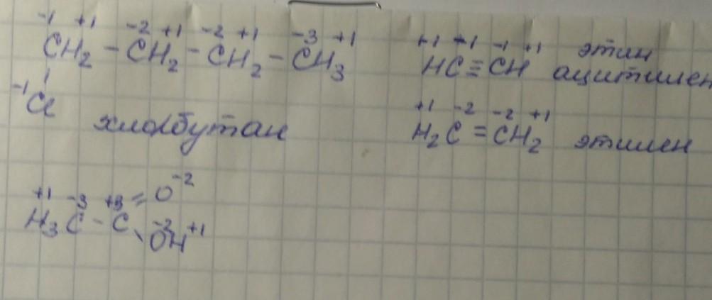 Определите валентность и степень окисления всех атомов в молекулах: хлорбутана, ацетилена, этилена, уксусной кислоты.
