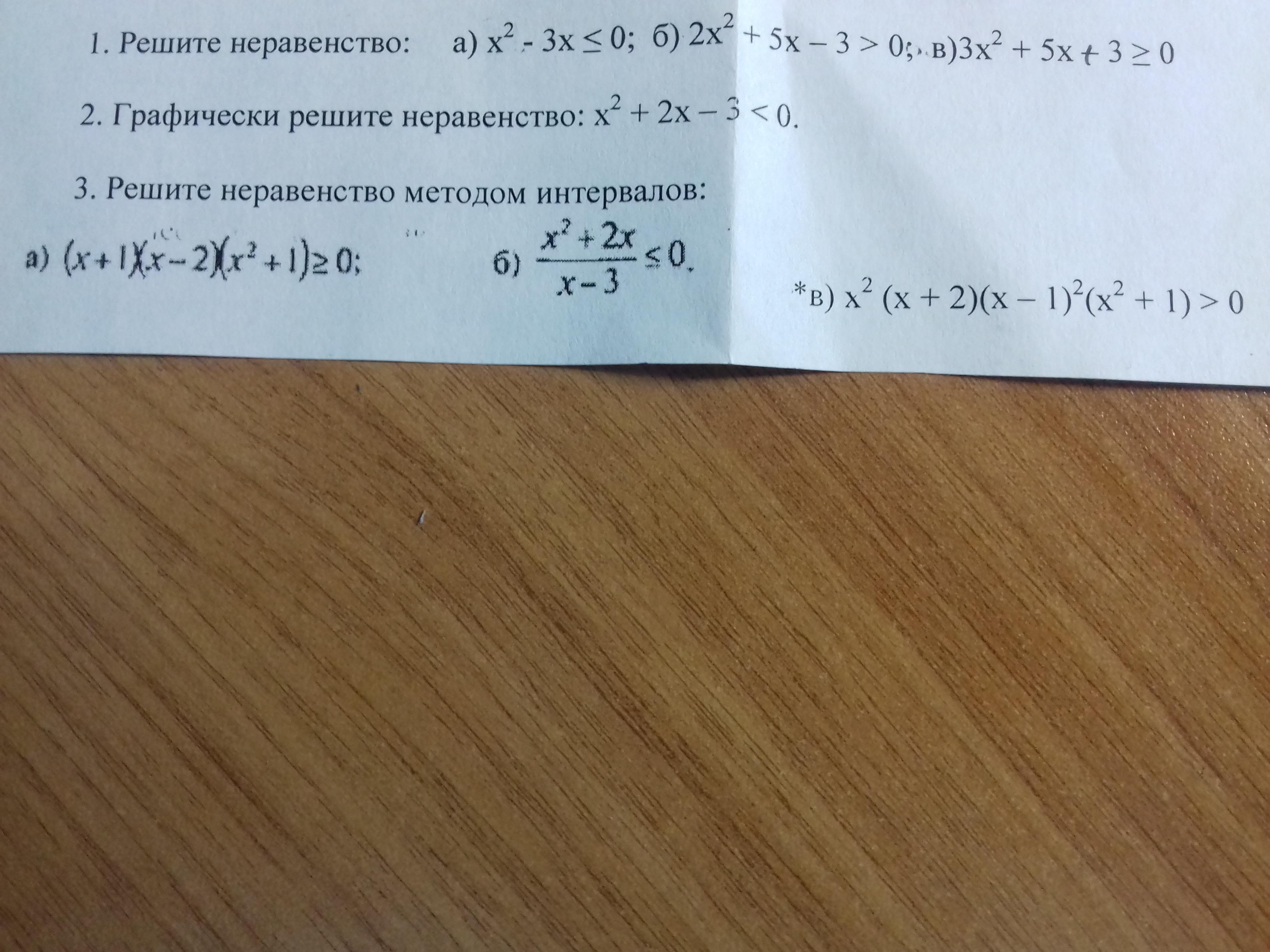 15 баллов. Ребята привет, помогите пожалуйста решить задания хотя-бы 1 и 2. Очень нужно. Тема квадратные неравенства, изучил все 3 способа-графический, аналитический, метод интервалов.
