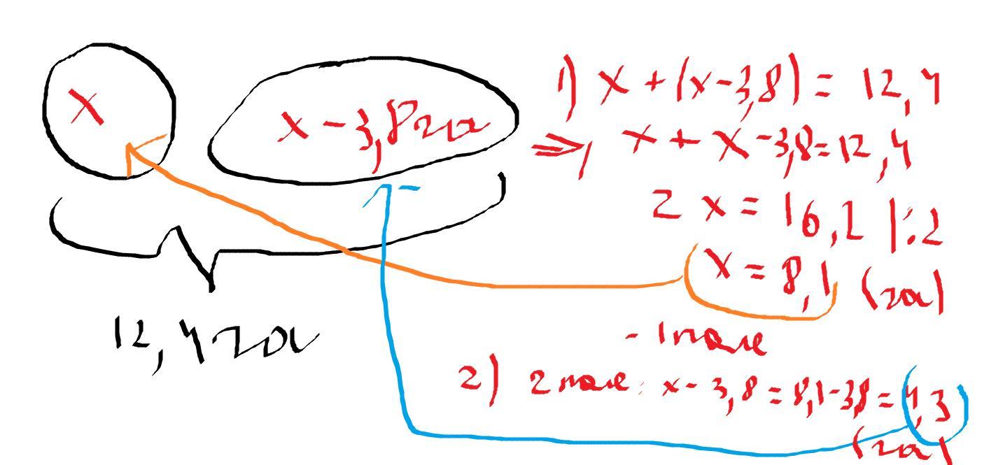Решите Задачу: Два поля занимают площадь 12,4 га. Одно поле на 3,8 га меньше другого. Найдите площадь каждого поля. Даю 15 баллов