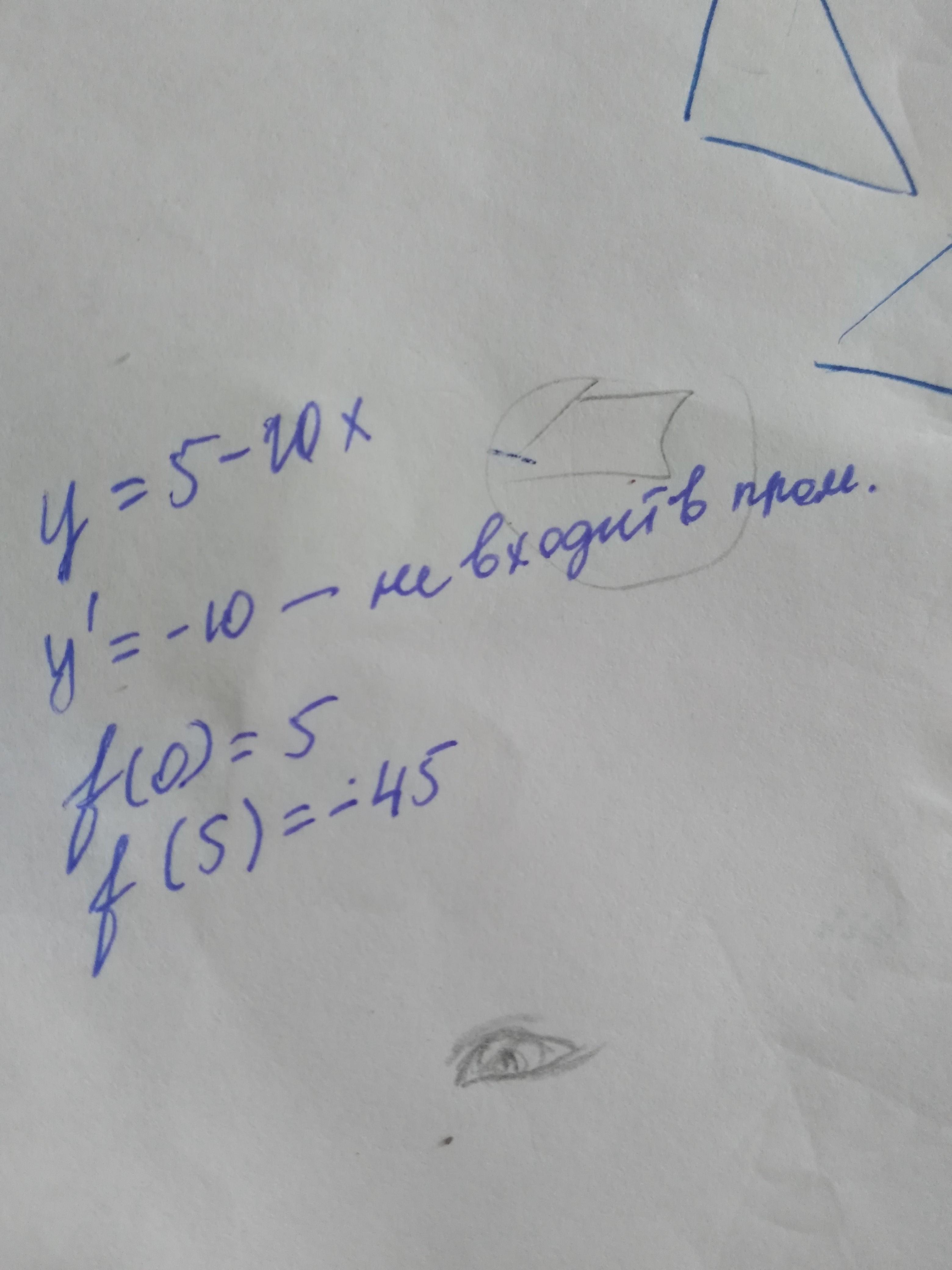 y(5)=5-10*5=5-50=-45 наименьшее значение