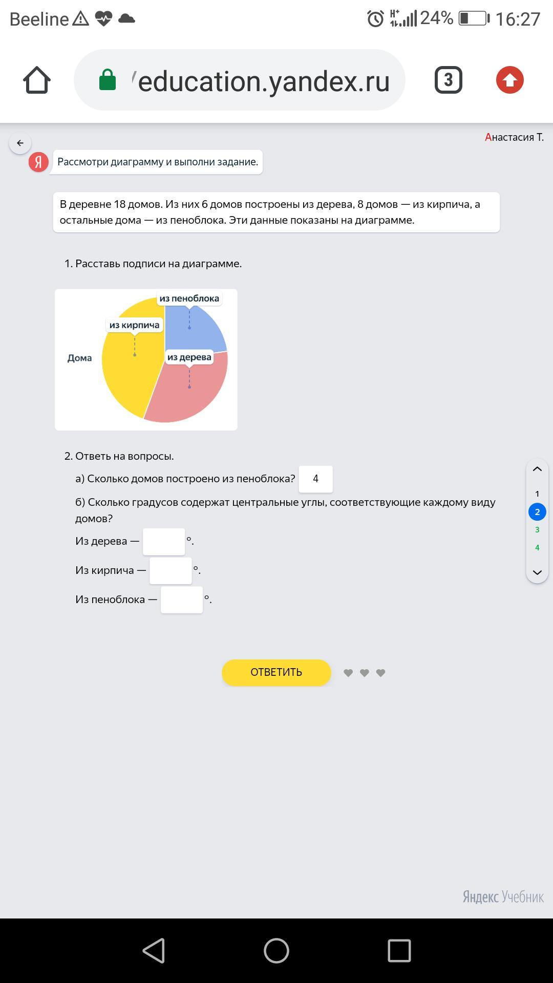 х=360°*6/18=120°- дома из дерева