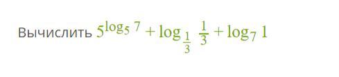 5^log₅7+log₁/₃(1/3)+log₇1=7+1+0=8.