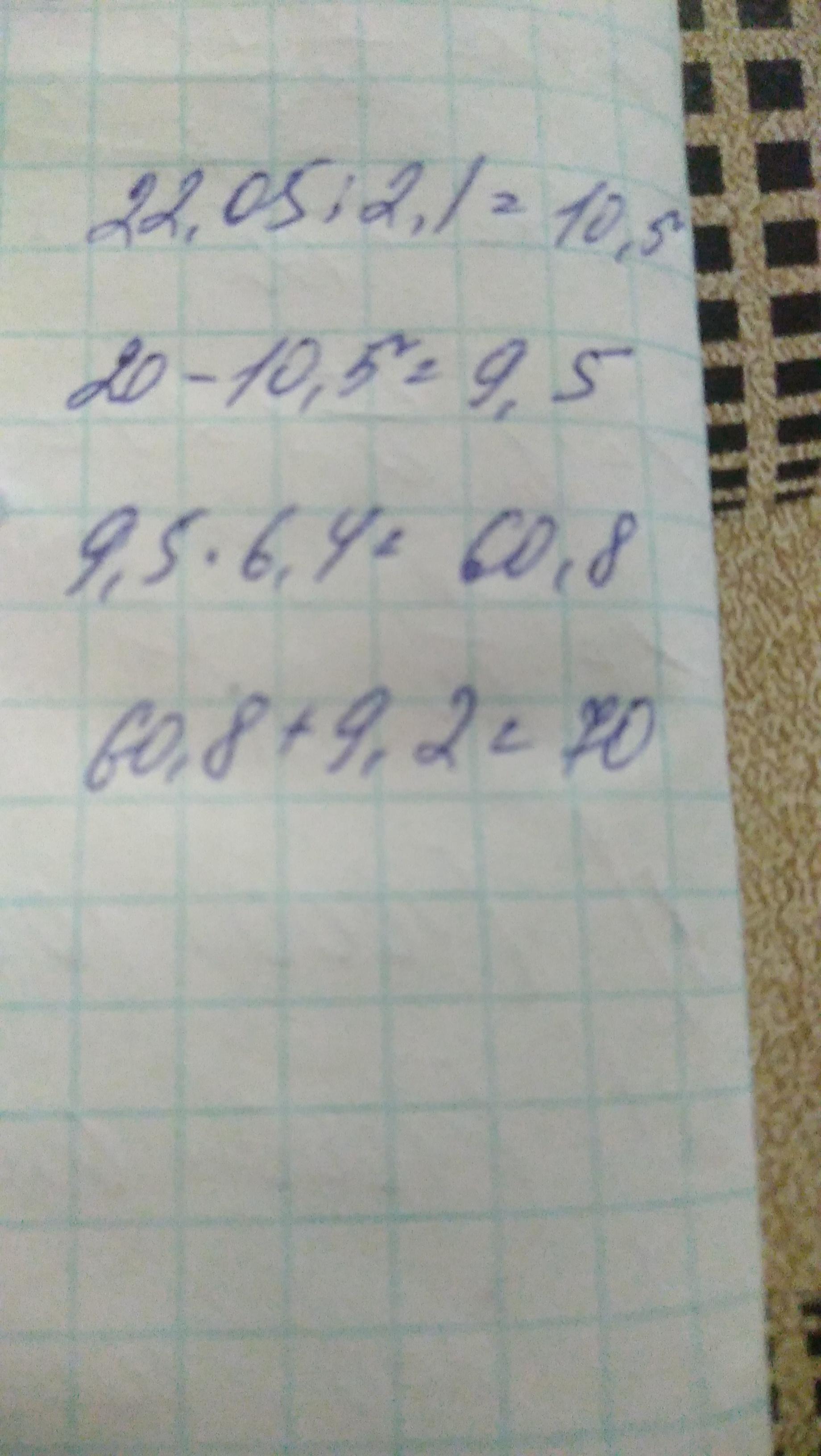 1)22,05÷2,1=10,5