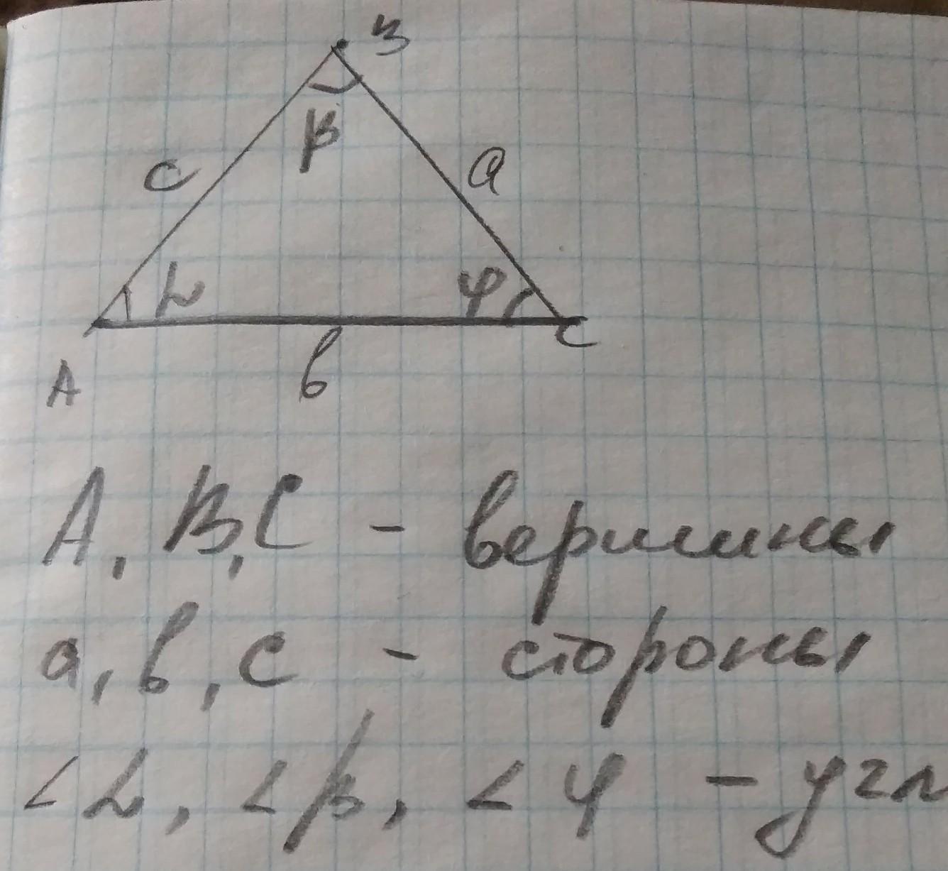 Треугольник это фигура, которая имеет 3 стороны, 3 вершины, 3 угла.