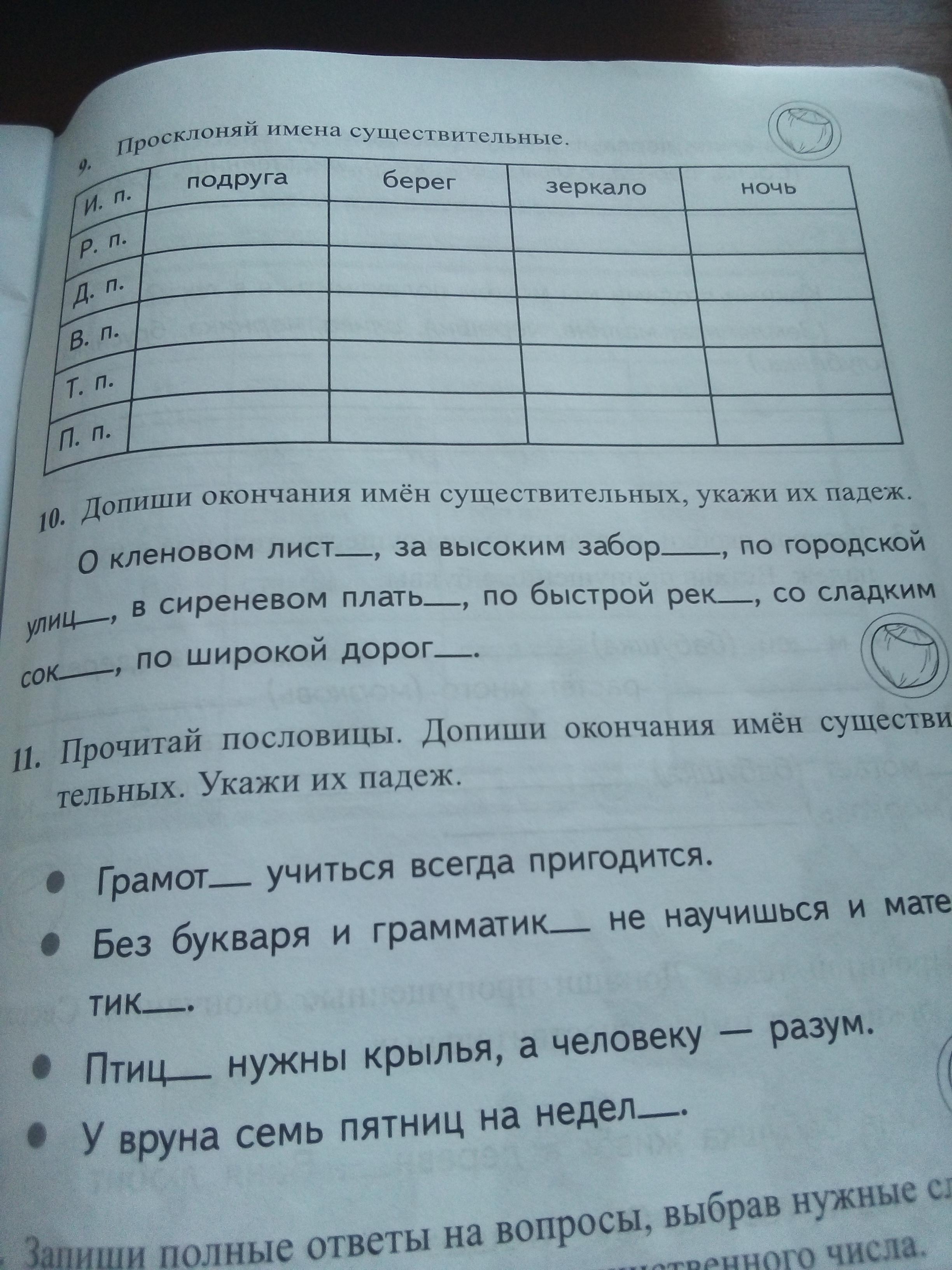 Ответ: 9 упр. Р.п. Подруги Берега Зеркала Ночи