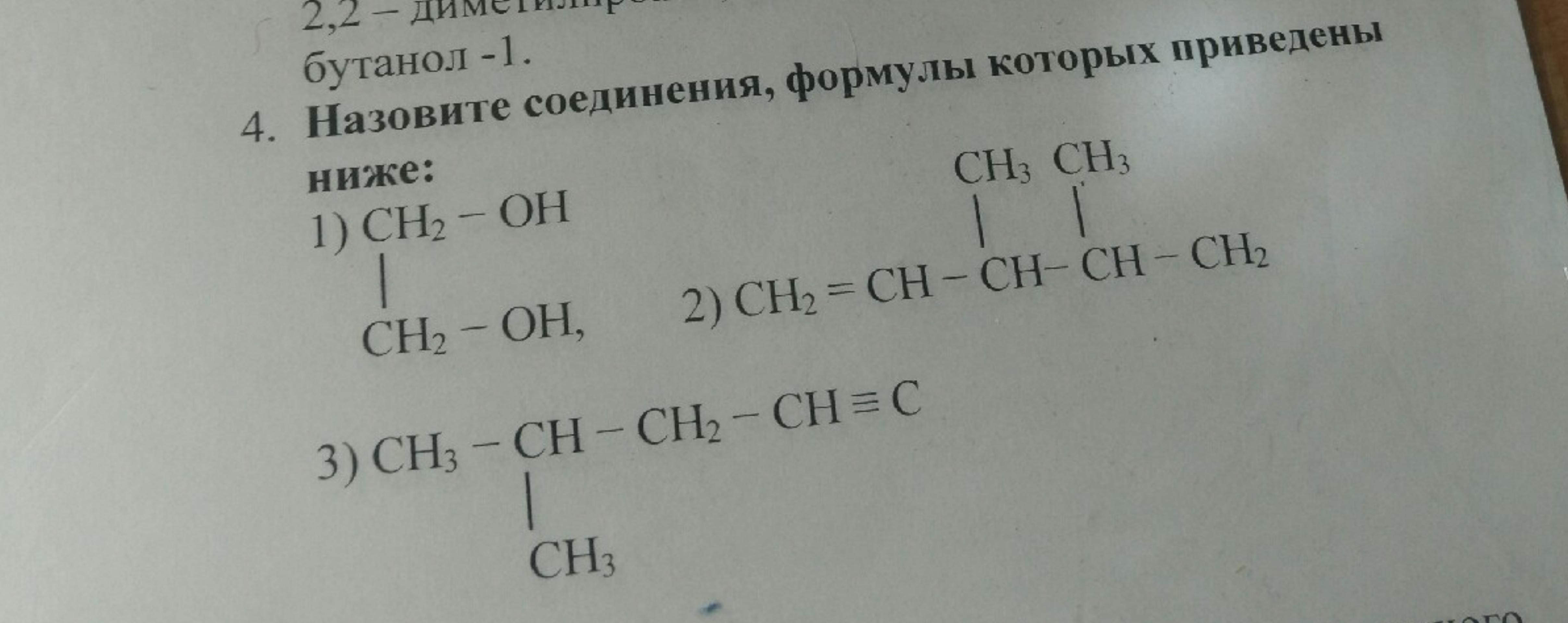 2) Чтобы назвать алкен (вещество с двойной связью), нужно выбрать самую длинную углеродную цепь. При этом нумеровать начинаем с того конца, к которому ближе двойная связь. Таким образом, сначала обозначаем заместители: 3,4-диметил ( ди - 2, три - 3, тетра - 4) Цифры обозначают номер атом углерода, к которому присоединен заместитель, а приставки, указанные чуть ранее, количество этих заместителей. В конце называем самую длинную углеродную цепь, которую выделяли в начале. Следовательно: 3,4-диметилпентен-1. Суффикс ен указывает, что это алкен.