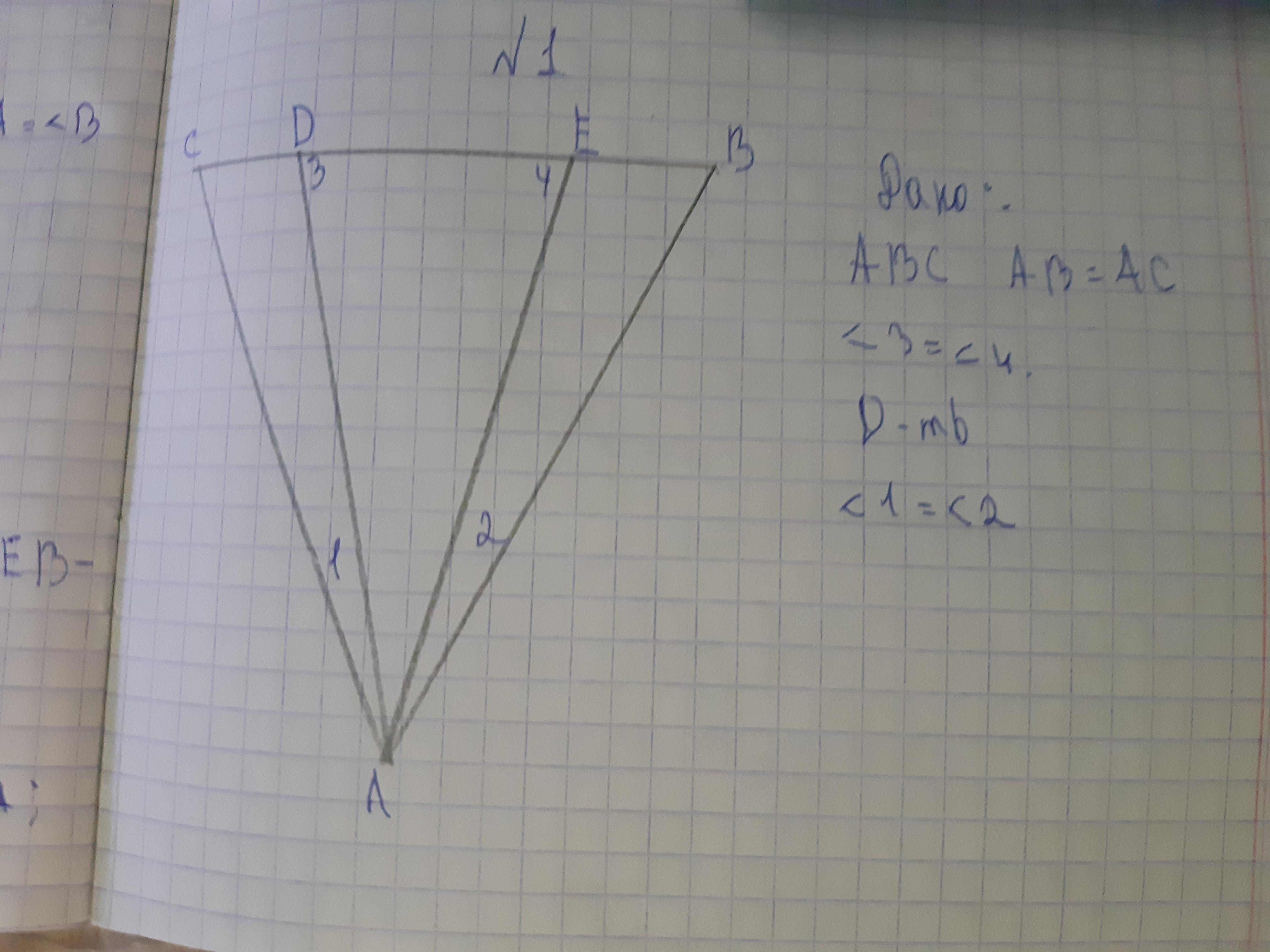 а т.к. ABC - равнобедренный, то α=β=>(1)=(2)