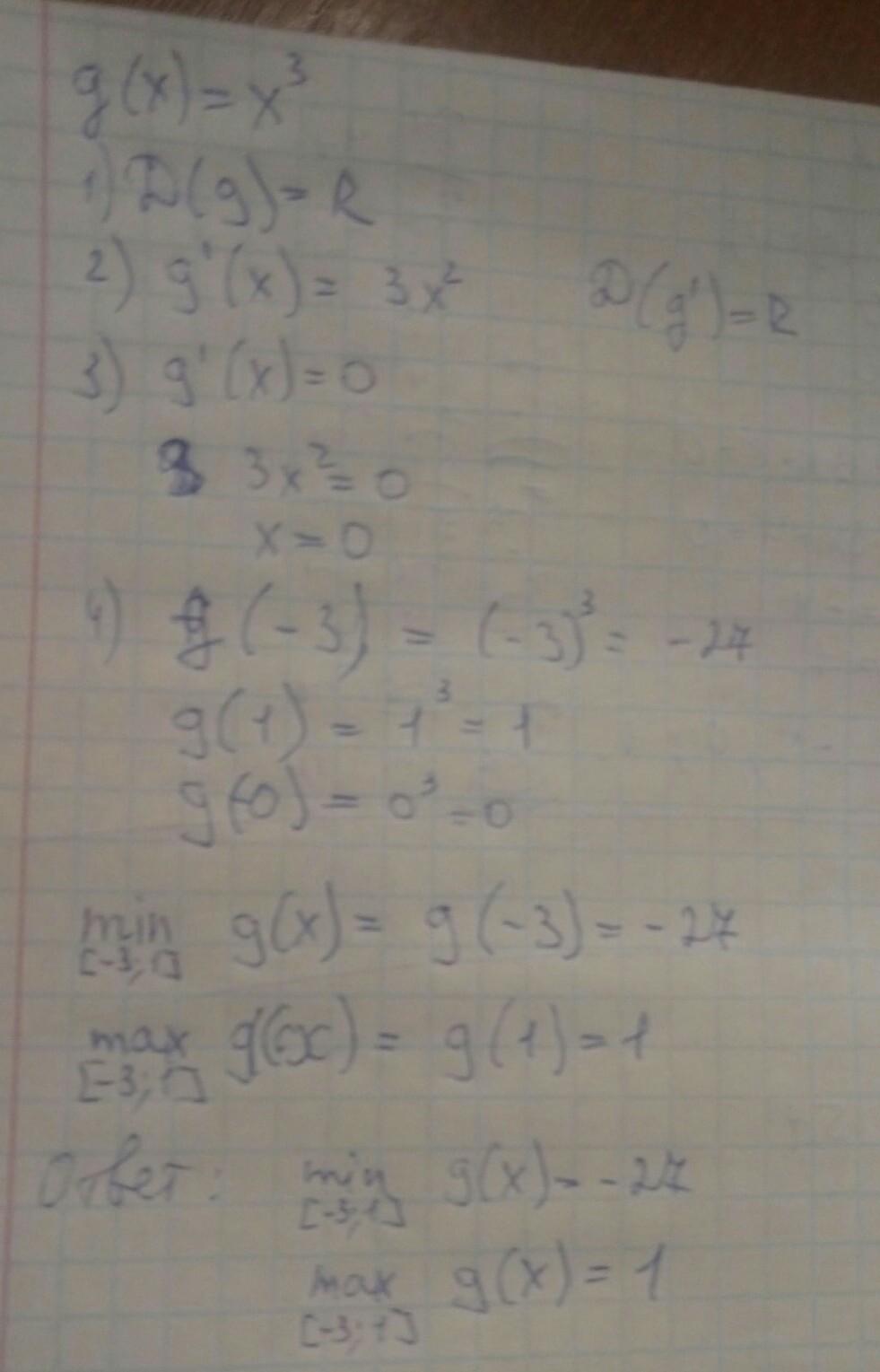 знайти найбільше та найменше значення g(x) функції на заданому проміжку g(x)= x³+3x²+1, x є [-3;1]