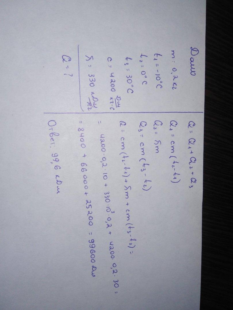 Какое количество теплоты потребуется чтобы расплавить 200 г льда взятого при температуре -10 градусов а затем воду нагреть до 30 градусов