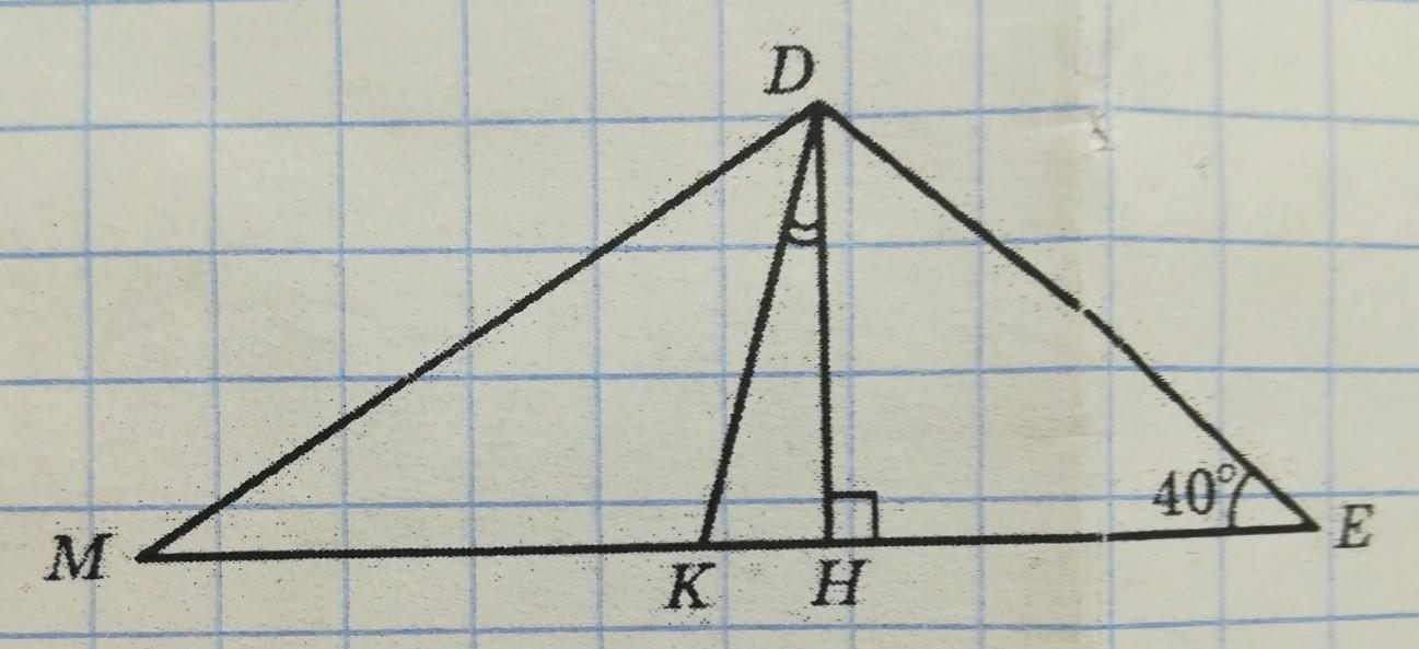 6. Отрезок DK — биссектриса, отрезок DH — высота треугольника MDE, изображенного