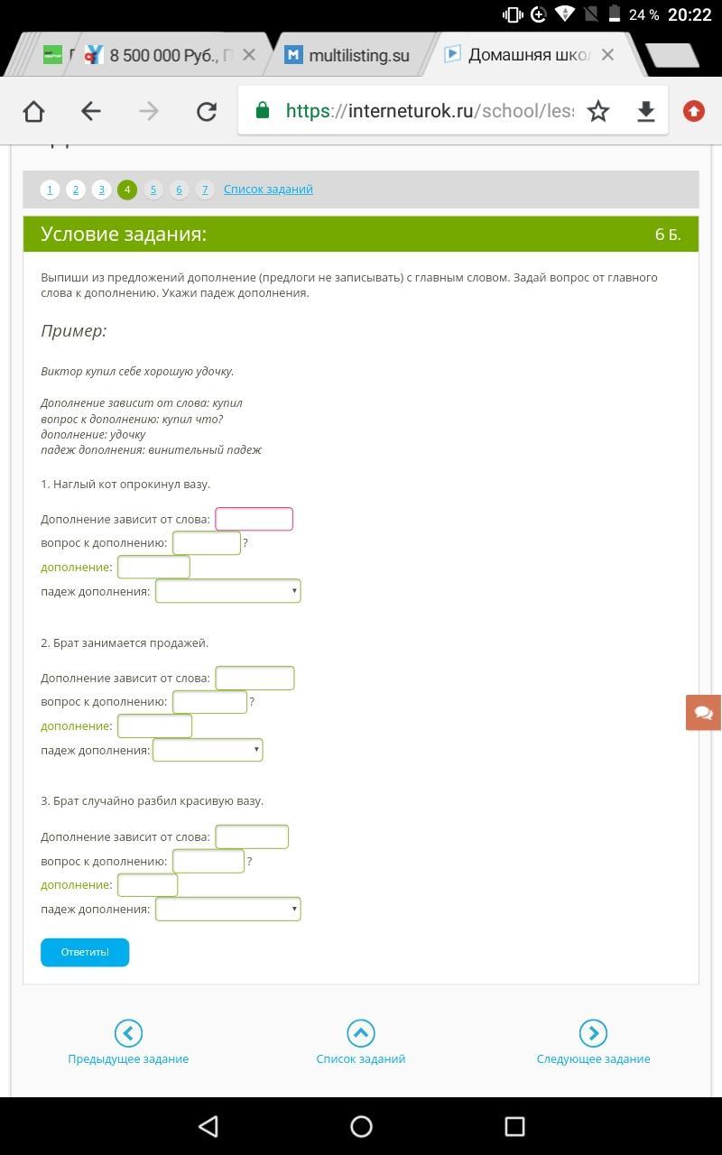 падеж дополнения: винительный