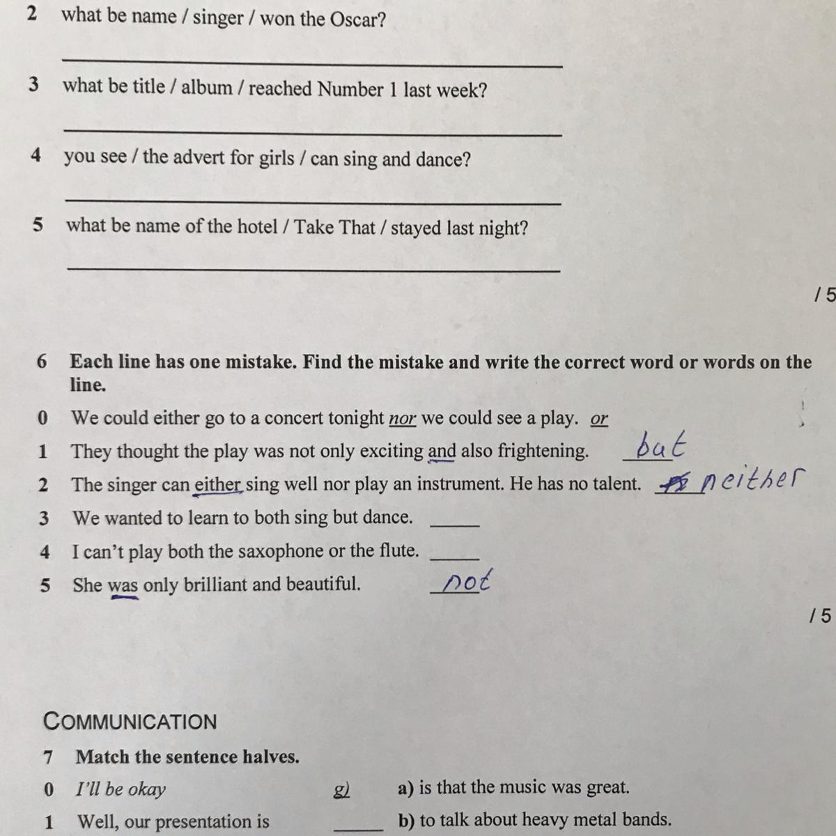 4 I can't play both the saxophone AND the flute.