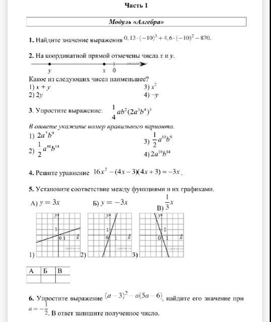 6 задание а^2-6а+9-5а^2+6а=-4а^2+9 подставляем -1/2 будет -4*(-1/2)^2+9=(-4)*1/4+9=-1+9=8