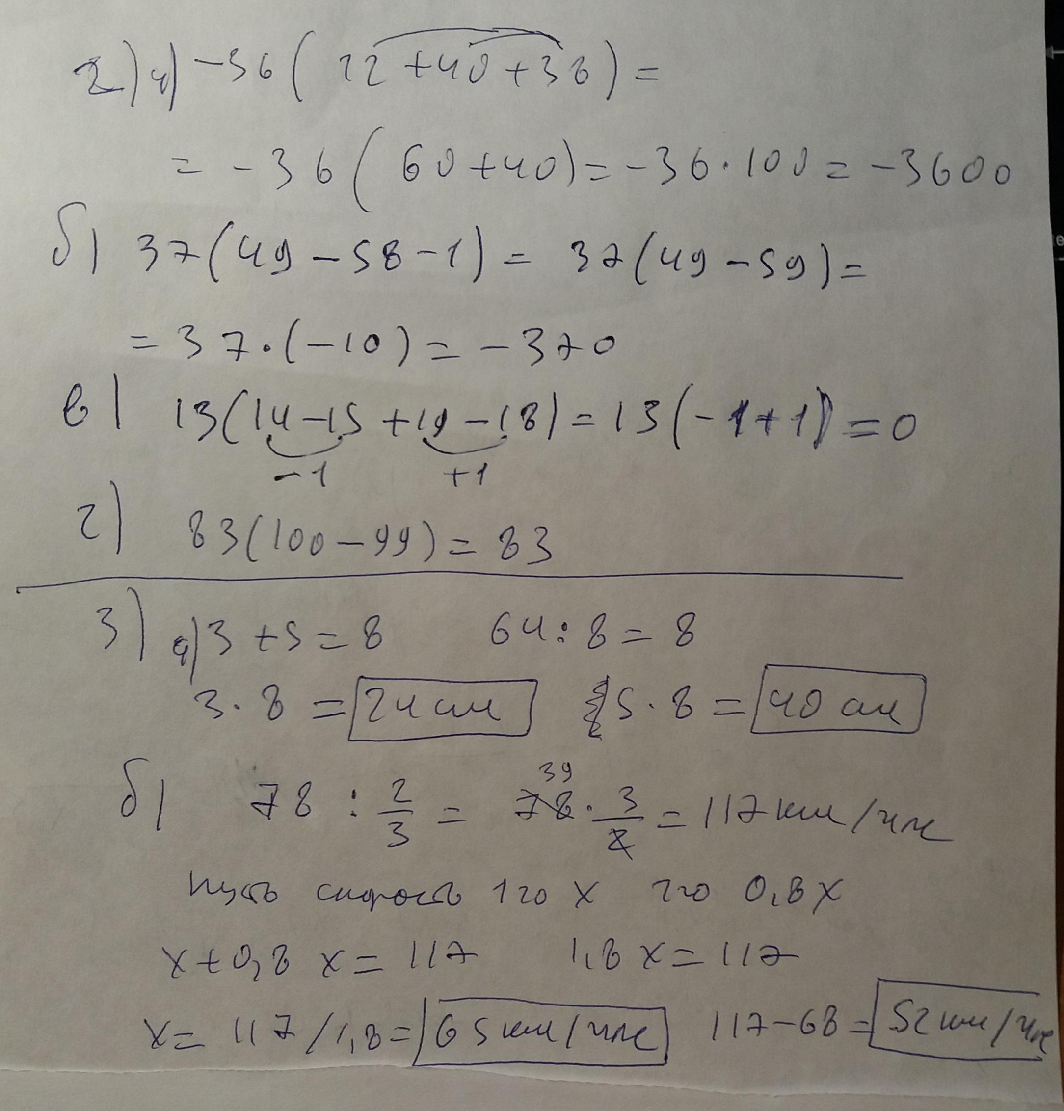 2. а)-36*22+(-36)*40+(-36)*38=-36*(22+38+40)=-3600