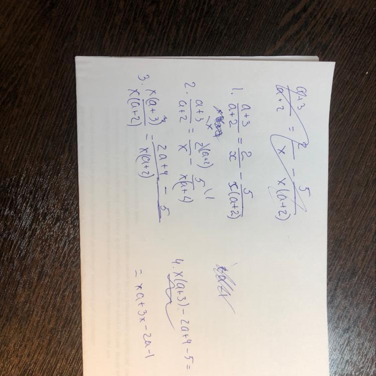 Объяснение:(a+3)/(a+2)=(2(a+2)-5) /(x(a+2)