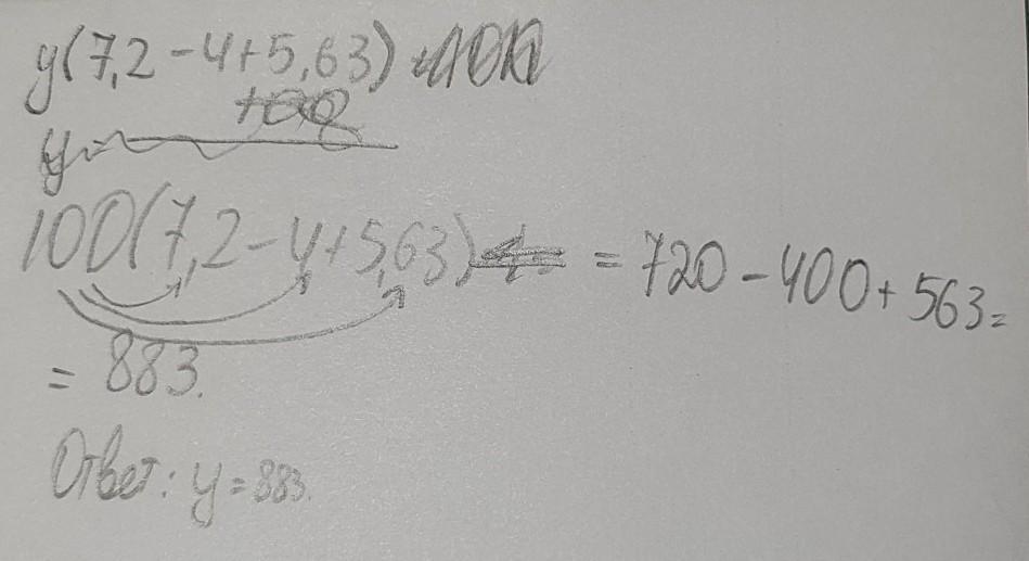 7,2 × 100 - 4 × 100 + 5,63 ×100 = 720 - 400 + 563 = 320 + 563 = 883