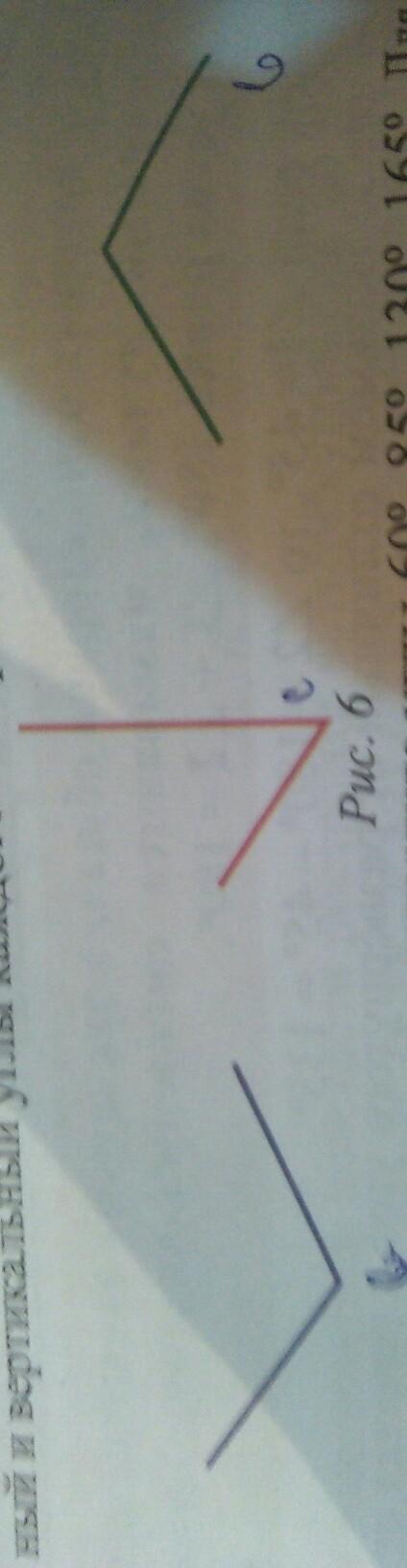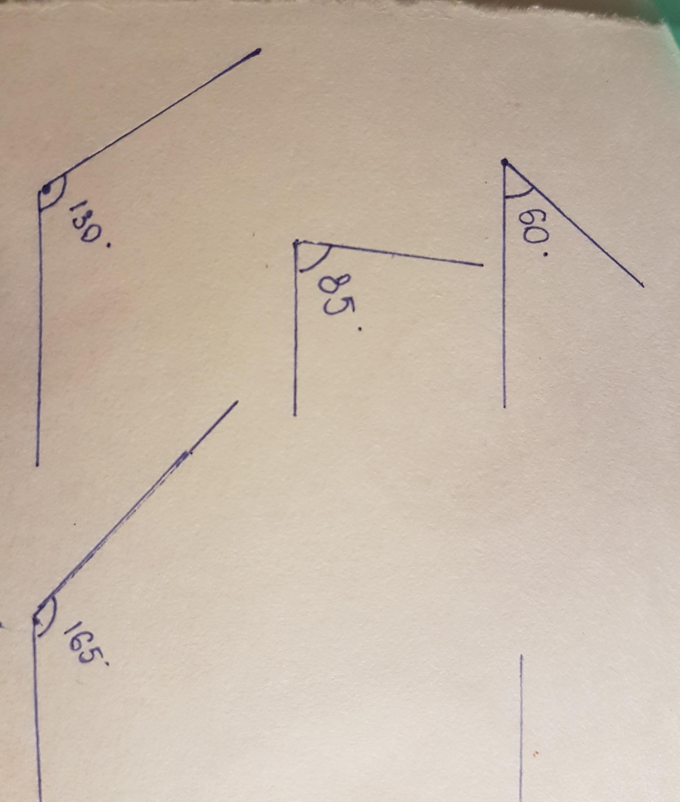 6. При помощи транспортира начертите углы 60", 85, 130, 165". Для каж на 1